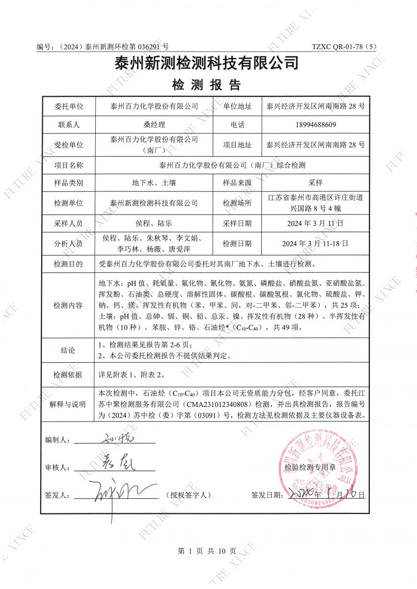 2024年土壤、地下水比對報告(南廠(chǎng)區)